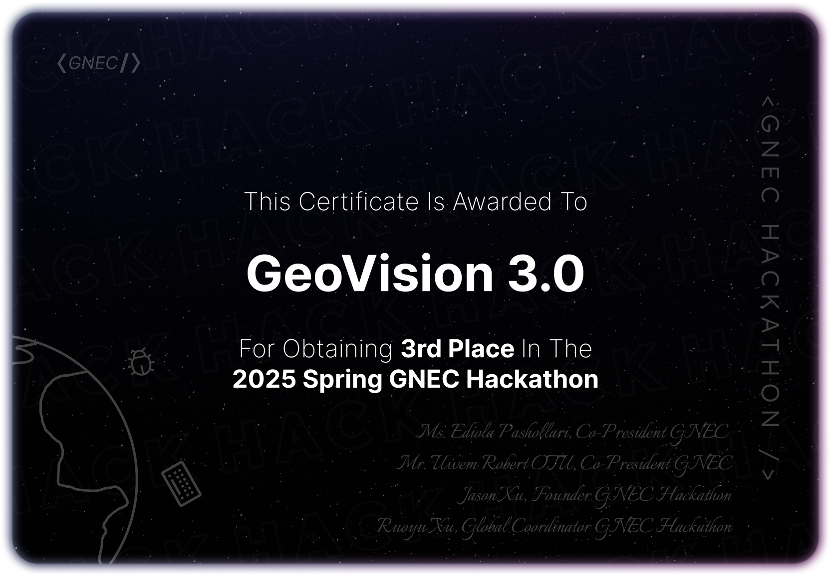GNEC has partnered with various global organizations and sponsors, accumulating over $160,000 in prizes. A detailed list is availible on Devpost. Winners are selected by a panel of judges from GNEC and the United Nations.